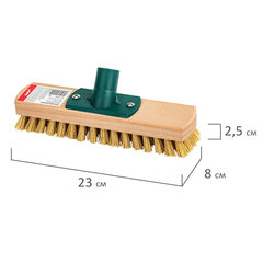 Тип товара: щетка, Назначение: универсальная, Материал основы щетки: деревянная, Материал щетины: полипропилен, Тип щетины: жесткая, Длина щетины: 2.5 см, Ширина щетки: 23 см, Глубина щетки: 8 см, Тип крепления черенка: еврорезьба, Цвет: натуральное дерево.