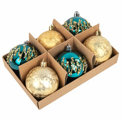 Набор упакован в картонную коробку с пластиковой крышкой, дополнительно упакован в индивидуальный трехслойный гофрокороб. Количество в наборе: 6 шт., Диаметр: 6 см, Материал: пластик, Цвет: бирюзовый/золото, Отделка: ассорти, Наличие рисунка: да, Серия: Powder Blue. Код: 592178