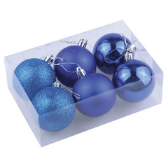 Все шары в наборе одного цвета. Количество в наборе: 6 шт., Диаметр: 8 см, Материал: пластик, Цвет: синий, Отделка: ассорти, Серия: Trio. Код: 590872