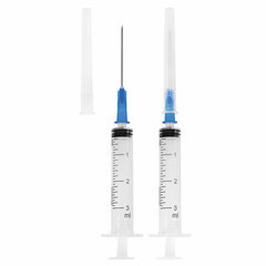 Трехкомпонентный одноразовый шприц изготовлен из специального полипропилена. Нетоксичен, апирогенен. Объем - 3 мл, размер иглы - 23G.Шприцы инъекционные стерильные с наконечником концентрического типа.