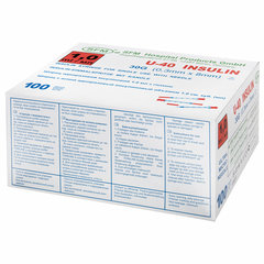 Упакован по 10 штук в ПЭ пакете. Нетоксичен, апирогенен. Метод стерилизации – этиленоксид (EO). Тип товара: инсулиновый, Комплектность: 3-х компонентный, Количество в комплекте: 10 шт., Объем шприца: 1 мл, Тип наконечника: интегрированная игла, Шкала: U-40, Размер иглы: 30G, Диаметр иглы: 0.3 мм, Длина иглы: 8 мм. Код: 630471