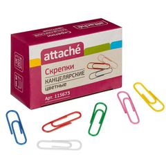Скрепки Attache незаменимы при работе в офисе или дома, когда нужно соединить несколько бумаг, например, все листы договора или другого документа. Изготовлены из металла с цветным полимерным покрытием. Имеют удобную закругленную форму. Скрепки вложены в картонную коробочку, 100 штук. Размер - 28 мм. Разноцветные. В промежуточной упаковке 10 пачек по 100 штук. Цвет - разноцветный, Страна происхождения - Китай, Форма скрепки - овальная, Кол-во штук в единице продажи - 100, Код КТРУ (каталог товаров, работ и услуг) - 25.99.23.000-00000020, Длина, мм - 28, Наличие отгиба - да, Покрытие материала - полимерное, Гофрированные - Нет, Единица продажи - упаковка