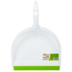 Совок для мусора + щетка, пластик, резиновая кромка, зелено-белый, ЛЮБАША, 603615