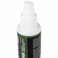 Меры предосторожности: Не применять детям, беременным и кормящим женщинам и лицам с повышенной чувствительностью кожи. Не допускать попадания в органы дыхания, рот, глаза и поврежденные участки кожи. В случае попадания - промыть водой. Наносить на кожу не более 2 раз в сутки. Не обрабатывать одежду на человеке и не надевать ее до полного высыхания. Избегать попадания средства на пластмассовые изделия.