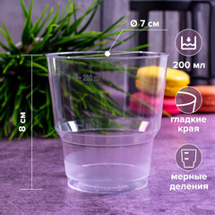 Тип товара: стакан, Объем: 200 мл, Материал: полистирол (PS), Количество в упаковке: 50 шт., Диаметр: 71 мм, Назначение: для холодных напитков, Количество слоёв: 1, Серия: КРИСТАЛЛ, Соответствует требованиям ГОСТа: ГОСТ Р 50962-96, Цвет: прозрачный.