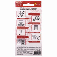 Стразы расположены на прозрачной подложке размером 7х12,5 см. Необходимо просто отклеить страз от подложки и поместить на выбранную поверхность.