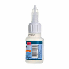 Внимание! Пары суперклея токсичны. При работе внутри помещений следует обеспечить интенсивный воздухообмен. Не допускать попадания клея на кожу и слизистые оболочки. Назначение: универсальный, Вид: цианоакрилатный клей, Форма выпуска: клей, Время схватывания: 0.15 минут, Вес/объем: 20 г/мл, Многоразовое применение: да, Водостойкий: да, Склеивает: войлок, дерево, картон, керамика, кожа, металл, оргстекло, пластик, резина, стекло, фарфор, фиберглас, Специальный колпачок позволяет использовать клей многократно: да, Цвет клея: прозрачный. Код: 609593