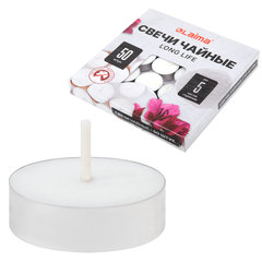 Свечи чайные Long Life, до 5 часов горения, вес 12 г, КОМПЛЕКТ 50 шт., в гильзе, LAIMA, 609200