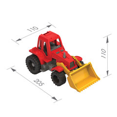 Трактор "Ижора" – это не просто игрушка, а надёжное изделие из прочного и безопасного пластика, которое радует яркими, не тускнеющими со временем цветами.Универсальный трактор станет отличным спутником для игр как дома, так и на улице: подвижный грейдер и большие крутящиеся колёса обеспечивают отличную проходимость, а в кабину можно посадить фигурку водителя.