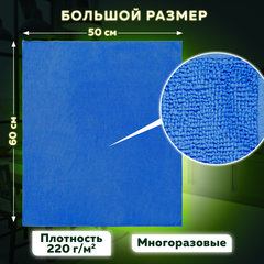 Тряпка из микрофибры 50х60 см, АВТО / ДОМ / ОФИС, "OVERLOCK INDIGO COLOUR", синяя, 220 г/м2, LAIMA HOME, 608222