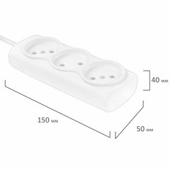 Удлинитель Р16-010, 3 розетки без заземления, 3 м, 2х0, 75 мм, 1300 Вт, белый, 563