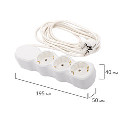 Вся информация на сайте о товарах носит справочный характер и не является публичной офертой в соответствии с пунктом 2 статьи 437 ГК РФ. Производитель оставляет за собой право изменять характеристики товара, его внешний вид и комплектность без предварительного уведомления продавца. Тип устройства: удлинитель, Количество розеток: 3 шт., Длина шнура: 3 м, Максимальный ток нагрузки: 10 А, Суммарная мощность нагрузки: 2200 Вт, Номинальное напряжение: 250 В, Номинальная частота напряжения сети: 50 Гц, Наличие заземления: да, Подключение: к розеткам евростандарта, Сечение провода: 3x0,75 мм, Степень защиты: IP20, Материал корпуса: ударопрочный РР-пластик, Цвет: белый, Серия: У, Длина: 195 мм, Ширина: 50 мм, Высота: 40 мм, Вес: 0.28 кг. Код: 514138