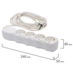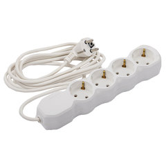 Удлинитель У10-004 4 розетки, с заземлением, 10 А, 5 м, белый, 8695