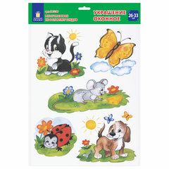 Украшение для окон и стекла ЗОЛОТАЯ СКАЗКА "Забавные зверюшки 2", 25,8х33,5 см, ПВХ, 591236