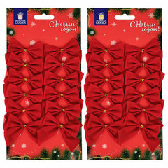 В наборе 24 бантика красного цвета. Размер украшений - 5x5 см. Материал - полиэстер. Упакованы в пакет с европодвесом.