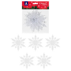 В наборе 5 снежинок. Размер украшений - 15 см. Материал - акрил. Упакованы в полипропиленовый прозрачный пакет с европодвесом. Тип украшения: украшение подвесное, Количество в наборе: 5 шт., Материал: акрил, Высота: 15 см, Ширина: 13 см, Цвет: прозрачный, Серия: Снежинки, Упаковка: пакет с европодвесом. Код: 592148