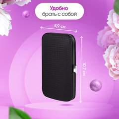 Инструменты упакованы в стильный компактный футляр. Он легко помещается в любую сумочку и не занимает место во время путешествия. Конструкция кейса защищает содержимое от повреждений. Размер футляра – 5,9х10,7 см. Набор продается в подарочной упаковке, что позволяет использовать его для поздравления близких, друзей и коллег с любым праздником!