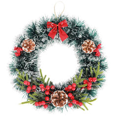 Материал – ПЭТ. Цвет – зелёный с белыми кончиками. Венок украшен ветками красных ягод, шишками, бантиками. К его основанию прикреплена лента, за которую можно легко повесить венок на стену или дверь. Можно разместить не только на вертикальную, но и горизонтальную поверхность, сделав частью новогоднего украшения. Тип товара: Венок, Материал: ПЭТ, Длина: 35 см, Ширина: 35 см, Цвет: зеленый с белыми кончиками, Способ крепления: лента, Дизайн: Пушистый. Код: 592520