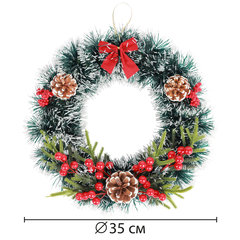 Венок новогодний, диаметр 35 см "Пушистый", с декором, ПЭТ, ЗОЛОТАЯ СКАЗКА, 592520