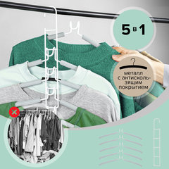 Вешалка-плечики трансформер, 5 плечиков, металл с покрытием, белые, BRABIX ULTRA, 607475