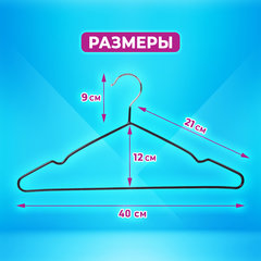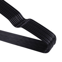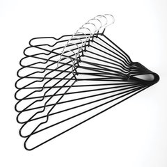 Размер модели составляет 40 см. 10 штук в комплекте. Материал каркаса: металл/ПВХ, Размер модели: 48-50, Ширина: 40 см, С перекладиной: да, Крепление для брюк и юбок: выемки, Особенности: невыкручивающийся крючок, Покрытие: глянцевое, Количество в комплекте: 10 шт., Цвет каркаса: черный. Код: 608467