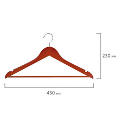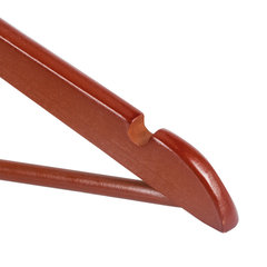 Материал каркаса: дерево, Размер модели: 48-50, Ширина: 45 см, С перекладиной: да, Крепление для брюк и юбок: выемки, Серия: Стандарт, Особенности: невыкручивающийся крючок, Покрытие: лакированное, Количество в комплекте: 5 шт., Цвет каркаса: вишневый.
