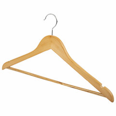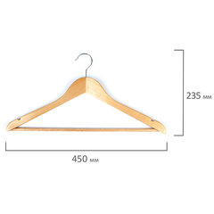 Материал каркаса: дерево, Размер модели: 48-50, Ширина: 45 см, С перекладиной: да, Крепление для брюк и юбок: выемки, Особенности: невыкручивающийся крючок, Покрытие: лакированное, Количество в комплекте: 5 шт., Цвет каркаса: натуральное дерево.