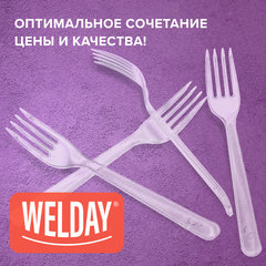 Одноразовые пластиковые вилки WELDAY подходят как для холодных, так и для горячих блюд. Используются на предприятиях общественного питания, в дороге, на пикнике, а также дома и в офисе.Приборы изготовлены из высококачественного пищевого прозрачного полистирола, поэтому они легкие и безопасные в использовании. Подойдут как для холодных, так и для горячих (до +70° Цельсия) блюд. Длина — 180 мм. В упаковке 50 штук.