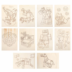 Заготовки деревянные для выжигания "Кубический мир", 5 шт., 10 рисунков, 15х21 см, BRAUBERG HOBBY, 665309