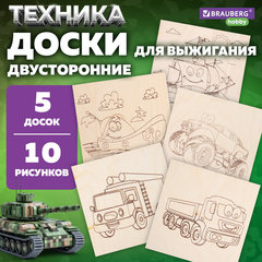 Заготовки деревянные для выжигания "Транспорт", 5 шт., 10 рисунков, 15х15 см, BRAUBERG HOBBY, 665305