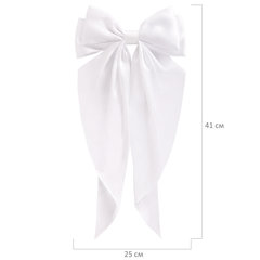 Тип товара: заколка для волос, Цвет: белый, Тип покрытия: нет, Тип заколки: автомат, Декор: бант, Количество в наборе: 1 шт., Размер: 25х41 см, Материал: металл/полиэстер, Серия: -, Упаковка: картонная карточка с европодвесом/пакет.