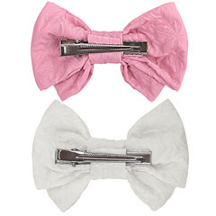 Тип товара: заколка для волос, Цвет: розовый/белый, Тип покрытия: нет, Тип заколки: зажим, Декор: бантик, Набор: да, Количество в наборе: 2 шт., Размер: 10х6,5 см, Материал: металл/полиэстер, Серия: -, Упаковка: картонная карточка с европодвесом.