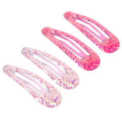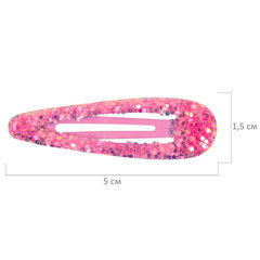 Тип товара: заколка для волос, Цвет: розовый, Тип покрытия: с блестками, Тип заколки: клик-клак, Декор: блестки, Набор: да, Количество в наборе: 4 шт., Размер: 5 см, Материал: металл, Серия: -, Упаковка: картонная карточка с европодвесом.