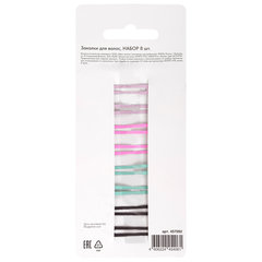 Тип товара: заколка для волос, Цвет: ассорти, Тип покрытия: soft-touch, Тип заколки: клик-клак, Декор: нет, Набор: да, Количество в наборе: 8 шт., Размер: 5 см, Материал: металл, Серия: -, Упаковка: картонная карточка с европодвесом.