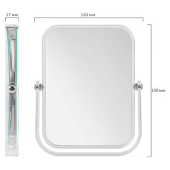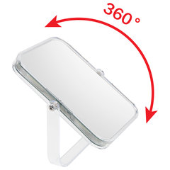 Тип размещения: настольное, Форма: прямоугольная, Высота: 19 см, Ширина: 16 см, Двухстороннее: да, С увеличительным эффектом: да, Тип регулировки положения: нет, Вращающееся: да, Объем аккумулятора: без подсветки, Материал оправы: пластик, Цвет оправы*: прозрачный, Цвет оправы: прозрачный.