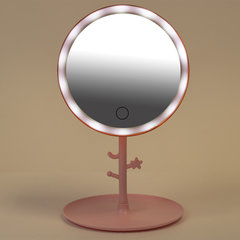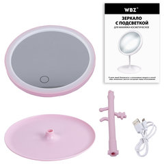 Зеркало настольное с LED-подсветкой для макияжа, диаметр 17 см, 3 режима свечения, аккумулятор 1200 mAh, цвет розовый, WBZ (ВБЗ), 609331