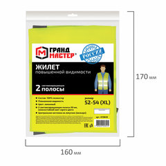 Жилет сигнальный, 2 светоотражающие полосы, ЛИМОННЫЙ, XL (52-54), ГРАНДМАСТЕР, 610840