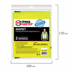 Жилет сигнальный, 2 светоотражающие полосы, ЛИМОННЫЙ, XXXL (60-62), ГРАНДМАСТЕР, 610889