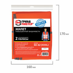 Жилет сигнальный, 2 светоотражающие полосы, ОРАНЖЕВЫЙ, XXXL (60-62), ГРАНДМАСТЕР, 610888