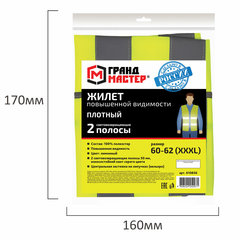 Жилет сигнальный ГОСТ, 2 светоотражающие полосы, ЛИМОННЫЙ, XXXL (60-62), ПЛОТНЫЙ, ГРАНДМАСТЕР, 610836