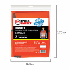 Жилет сигнальный ГОСТ, 2 светоотражающие полосы, ОРАНЖЕВЫЙ, XXL (56-58), ПЛОТНЫЙ, ГРАНДМАСТЕР, 610832