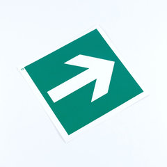 Знак "Направляющая стрелка" по противопожарным требованиям необходимо размещать на выходах из комнат, залов, цехов или кабинетов, на лестничных пролетах, подъездных площадках, у эвакуационных или запасных выходов.
