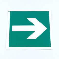 Указатель "Направляющая стрелка" обязательно используется вкупе в другими информационными табличками (например, "Выход", "Внимание", "Пожарный выход") для более точного обозначения направления эвакуации.