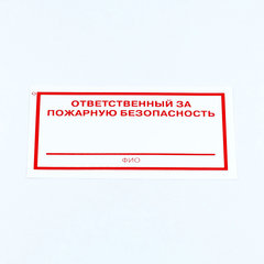 Знак "Ответственный за пожарную безопасность", КОМПЛЕКТ 10 штук, 100х200 мм, пленка, F21